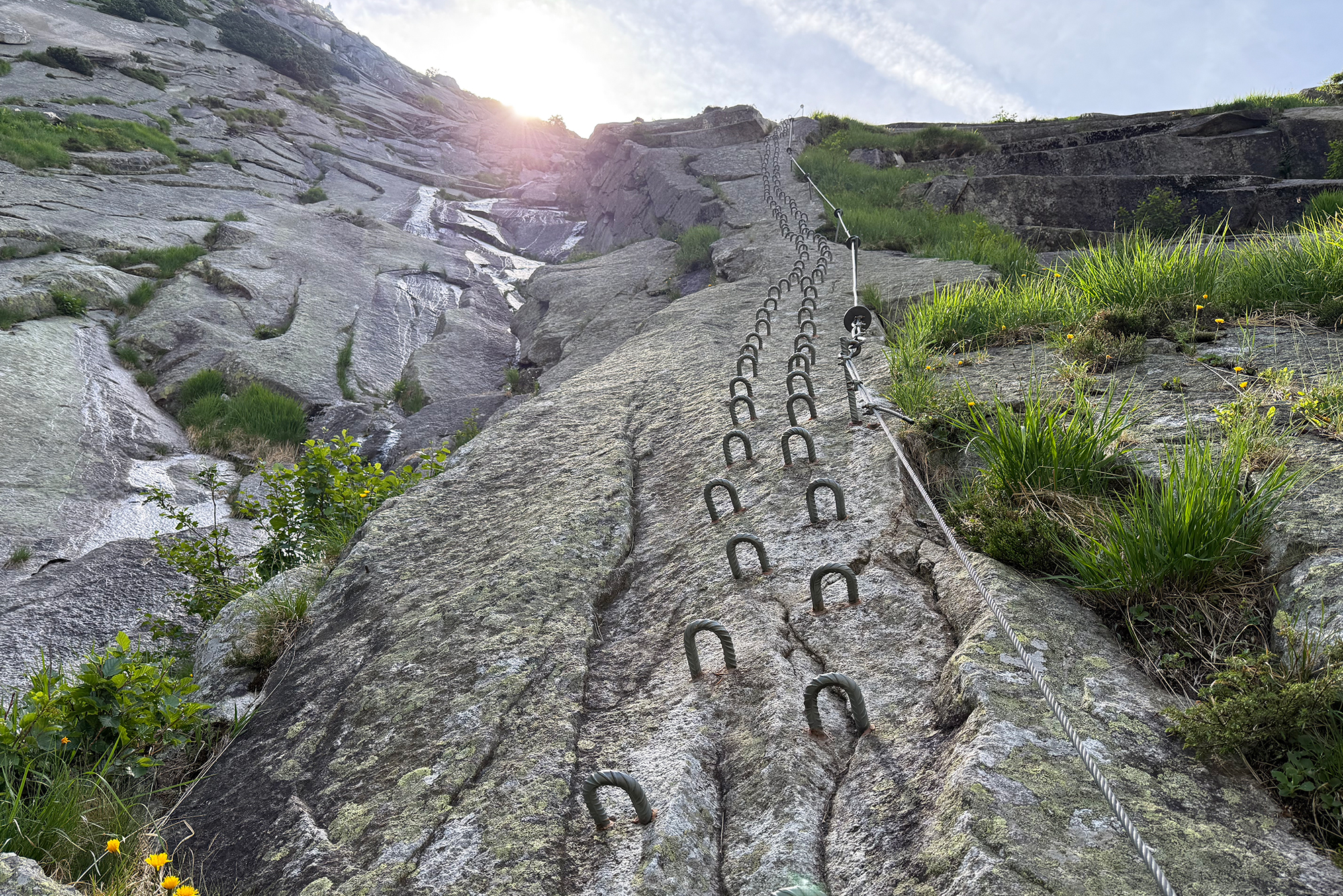 Équipé de 350 échelons, le parcours ne requiert aucune force particulière dans les bras. En revanche, la montée sollicite fortement les jambes et les mollets en raison de ses 500 m. de dénivelé positif. L’ascension est rythmée par de longues dalles entrecoupées de replats, permettant une progression par paliers.