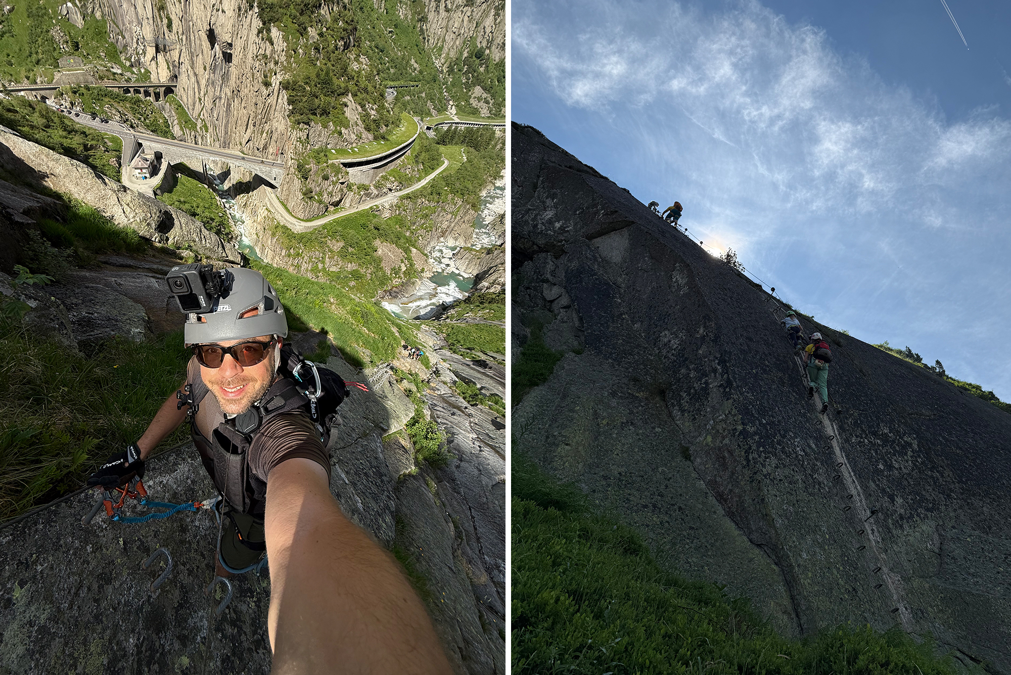 Quelques portions nécessitent l’utilisation de prises naturelles, et les zones de repos sont nombreuses. Sur l’ensemble du tracé, on profite d’une vue plongeante sur les gorges, le pont du Diable et les lacets de la Gotthardstrasse reliant Andermatt à Göschenen