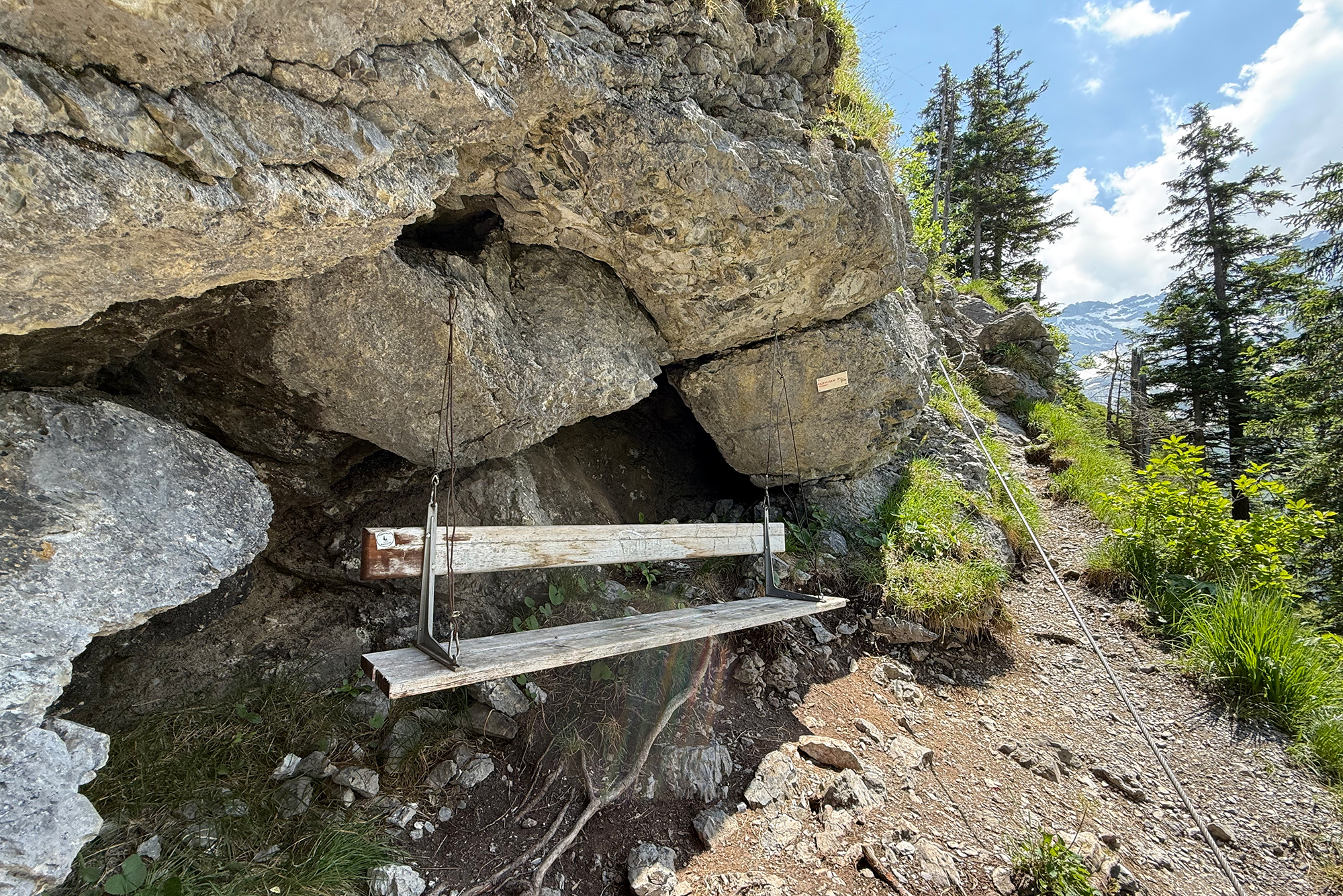Située en Suisse allemande, cette via ferrata offre un parcours sportif et très aérien. L’ascension sollicite fortement les jambes et demande une très bonne condition physique. Sa cotation D à TD n’est pas à sous-estimer, et aucun échappatoire n’est possible. Après 2h30 d’effort, une échelle de 20 mètres marque la fin du parcours, dans un paysage alpin remarquable.