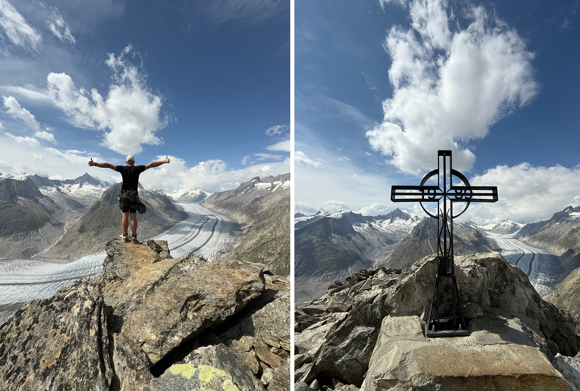 Pour rejoindre la station depuis l’arrivĂ©e de la via ferrata, suivez la signalĂ©tique bleue (peinture). Au sommet, une vue panoramique s’ouvre sur le glacier d’Aletsch.