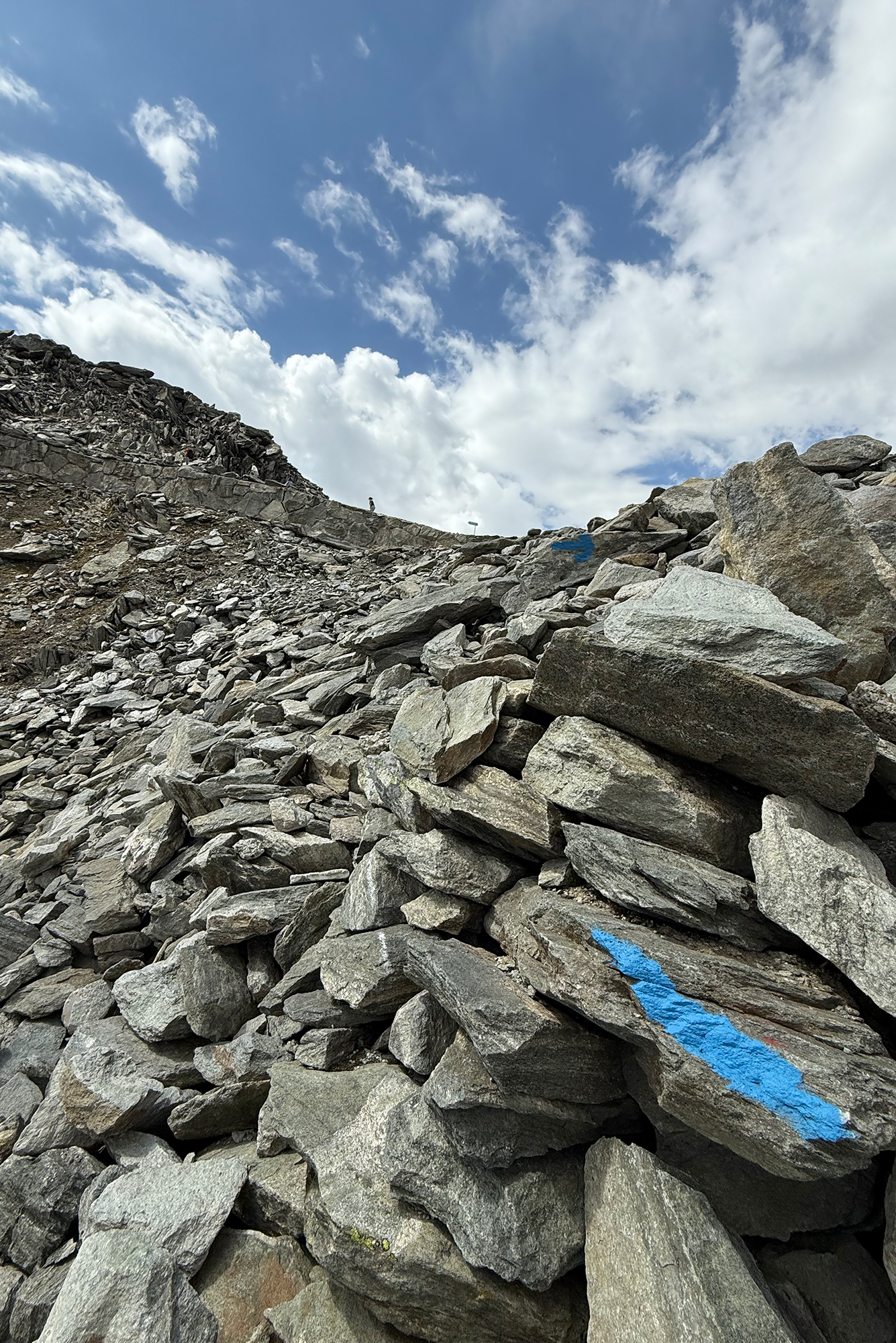 L’ascension se poursuit par plusieurs sections verticales en direction de gros amas rocheux.
