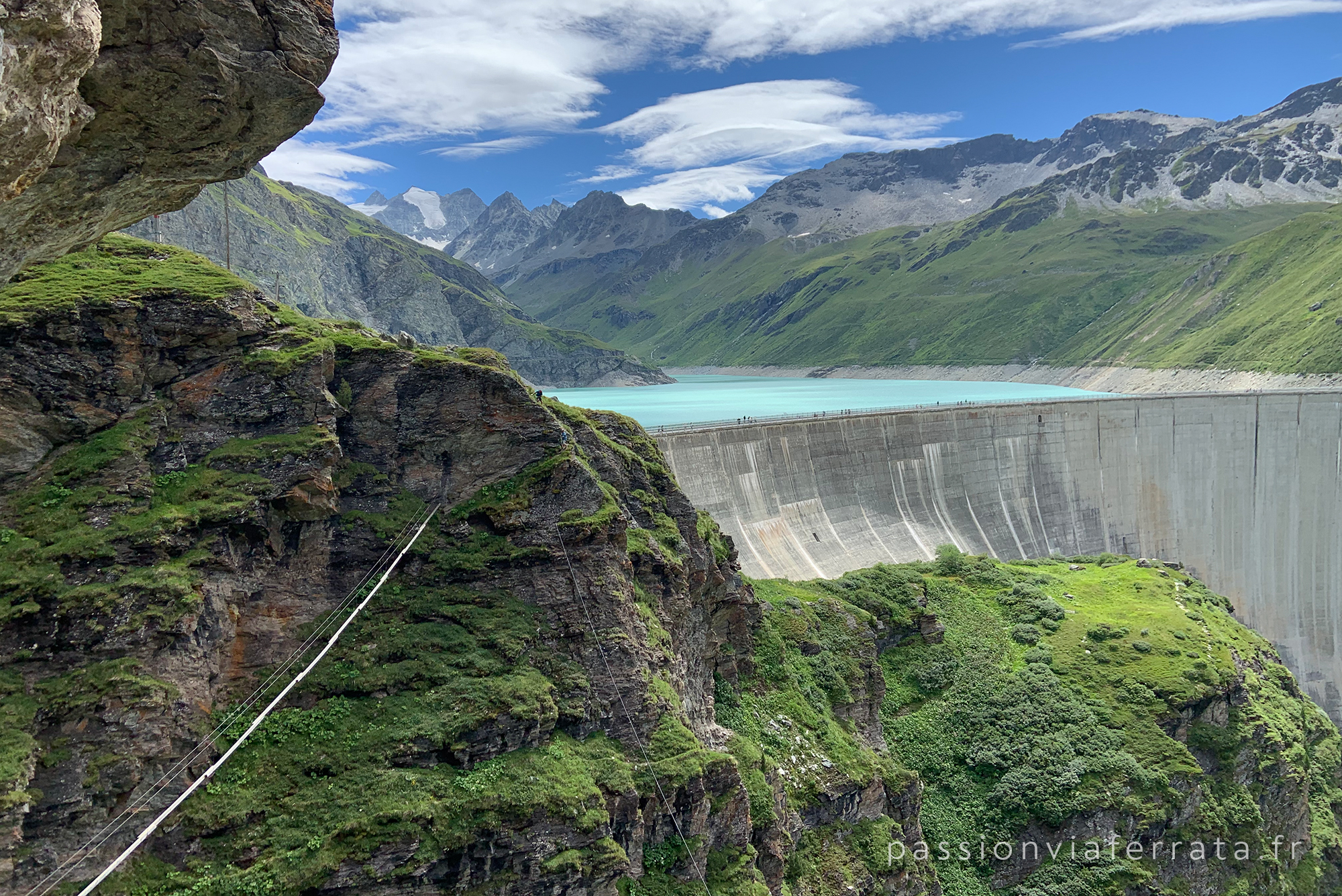 Située à 8 km du village de Grimentz, cette via cotée de AD à TD+ nous offre une magnifique vue sur le barrage et le glacier de Moiry.