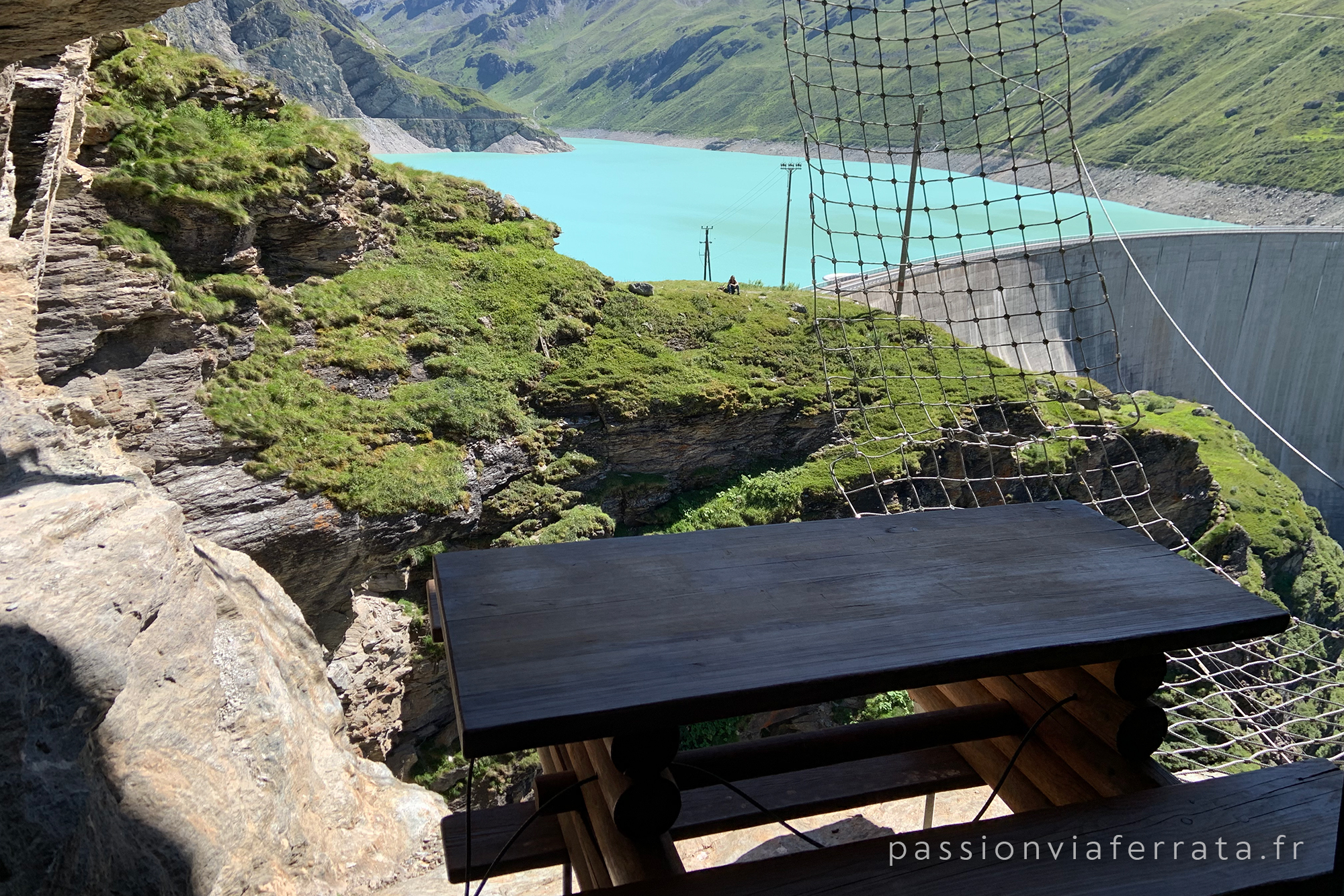 Les différents échappatoires permettent à toute la famille (avec un peu d’expérience tout de même) d’en profiter et d’éviter, ou non, les passages les plus compliqués ! Cette via est vraiment très bien équipée avec un pont de singe, une tyrolienne, un immense filet et même… une table perchée sur un rocher pour profiter d’une bonne fondue !