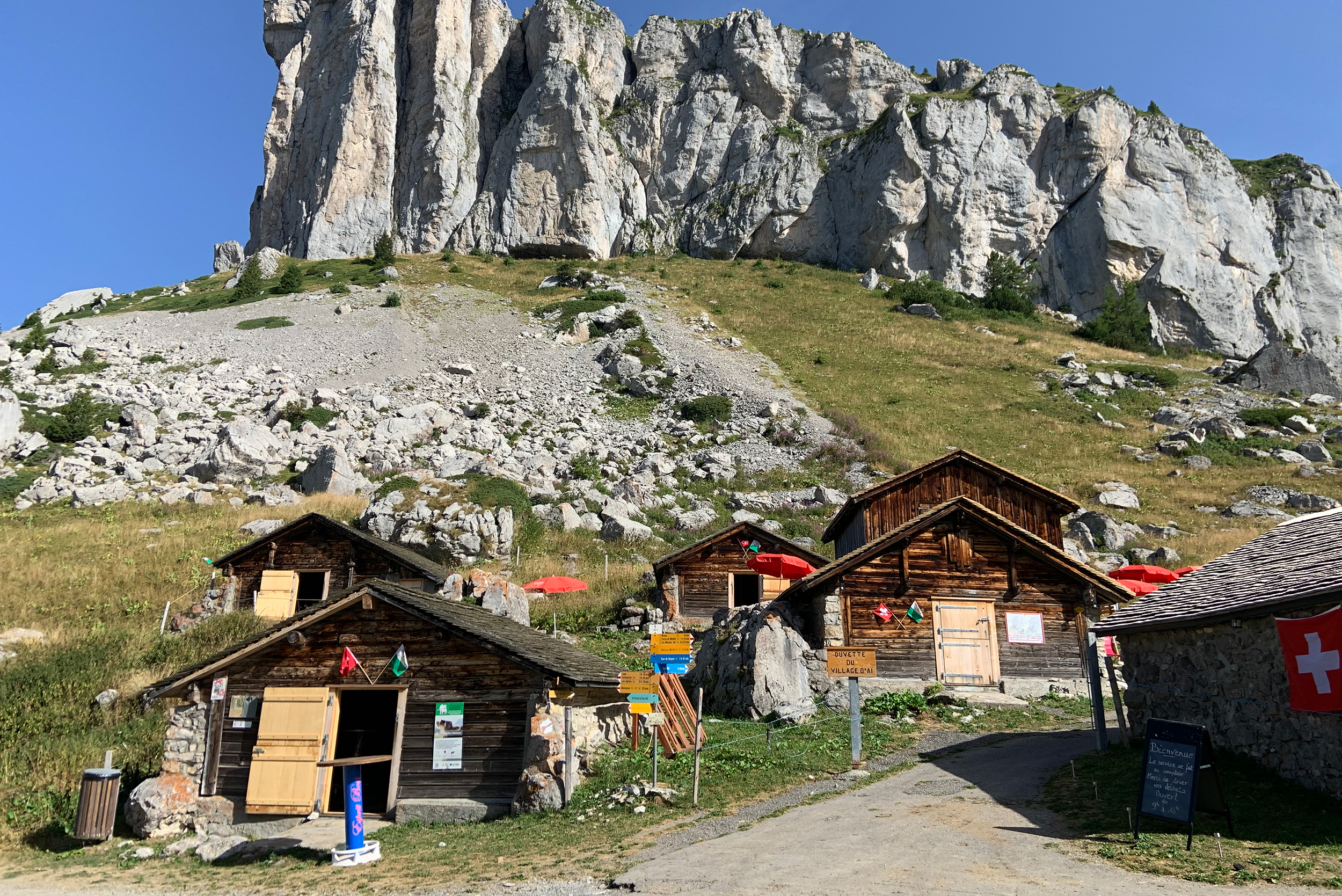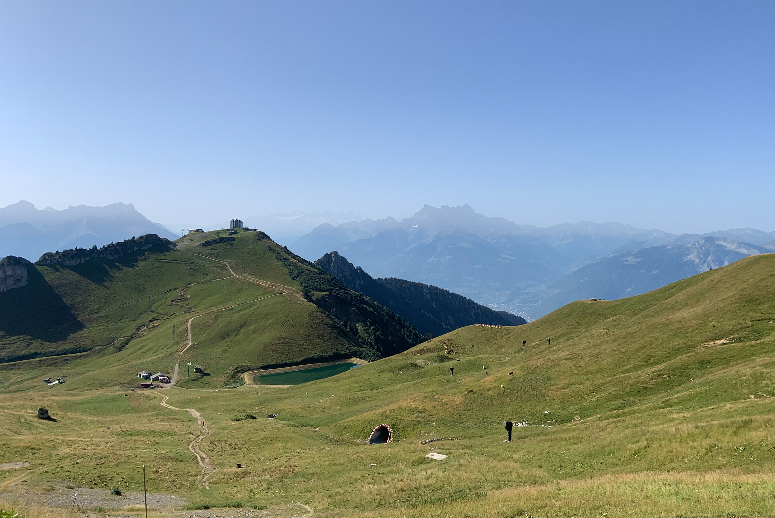 On stationne sa voiture sur le parking de Leysin avant de prendre le télésiège « Leysin – Tête d’Aï » pour la modique somme de… 25 frs (et 7 frs de parking). On ajoute une petite marche bien raide et sportive de 45 mn en plein soleil !