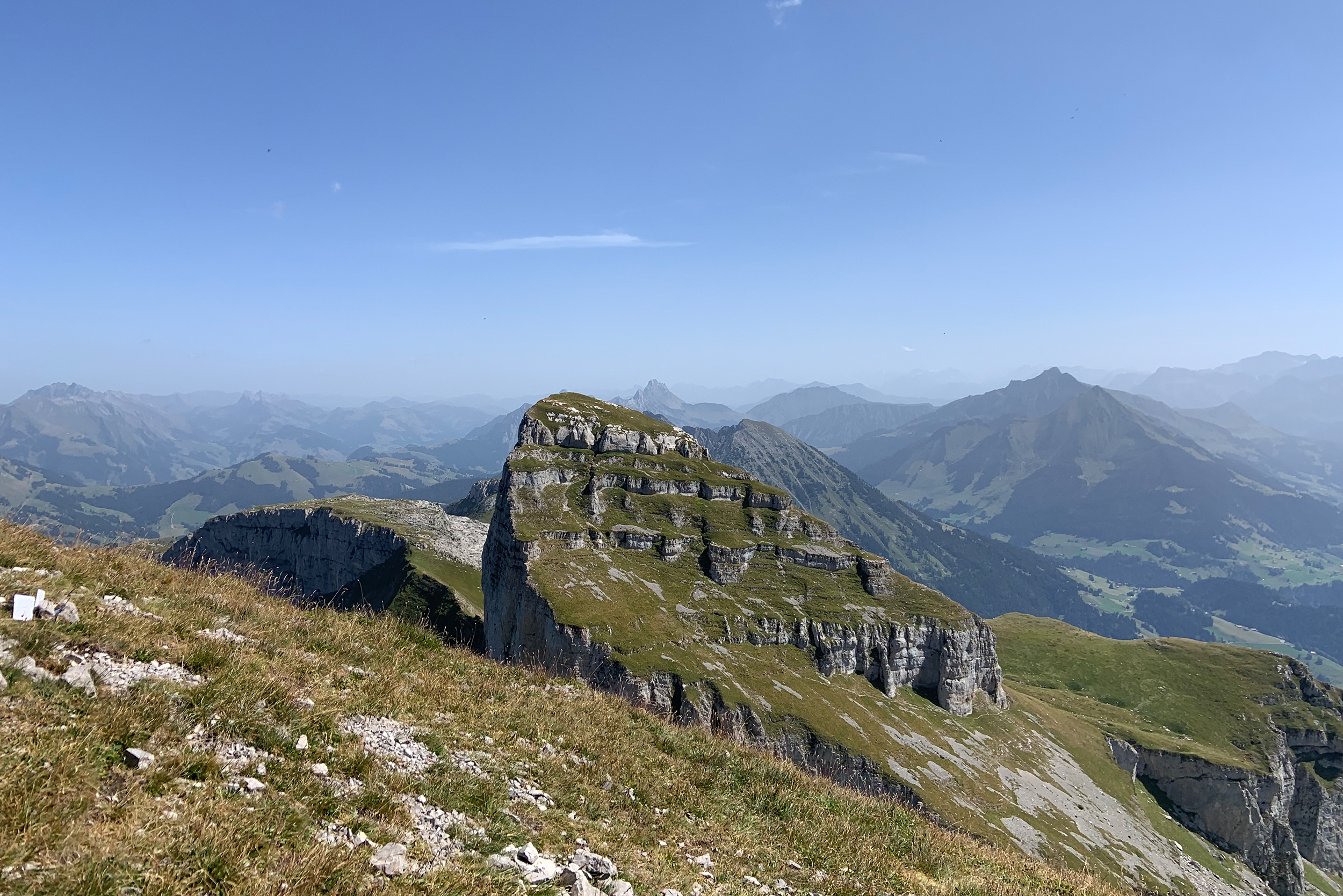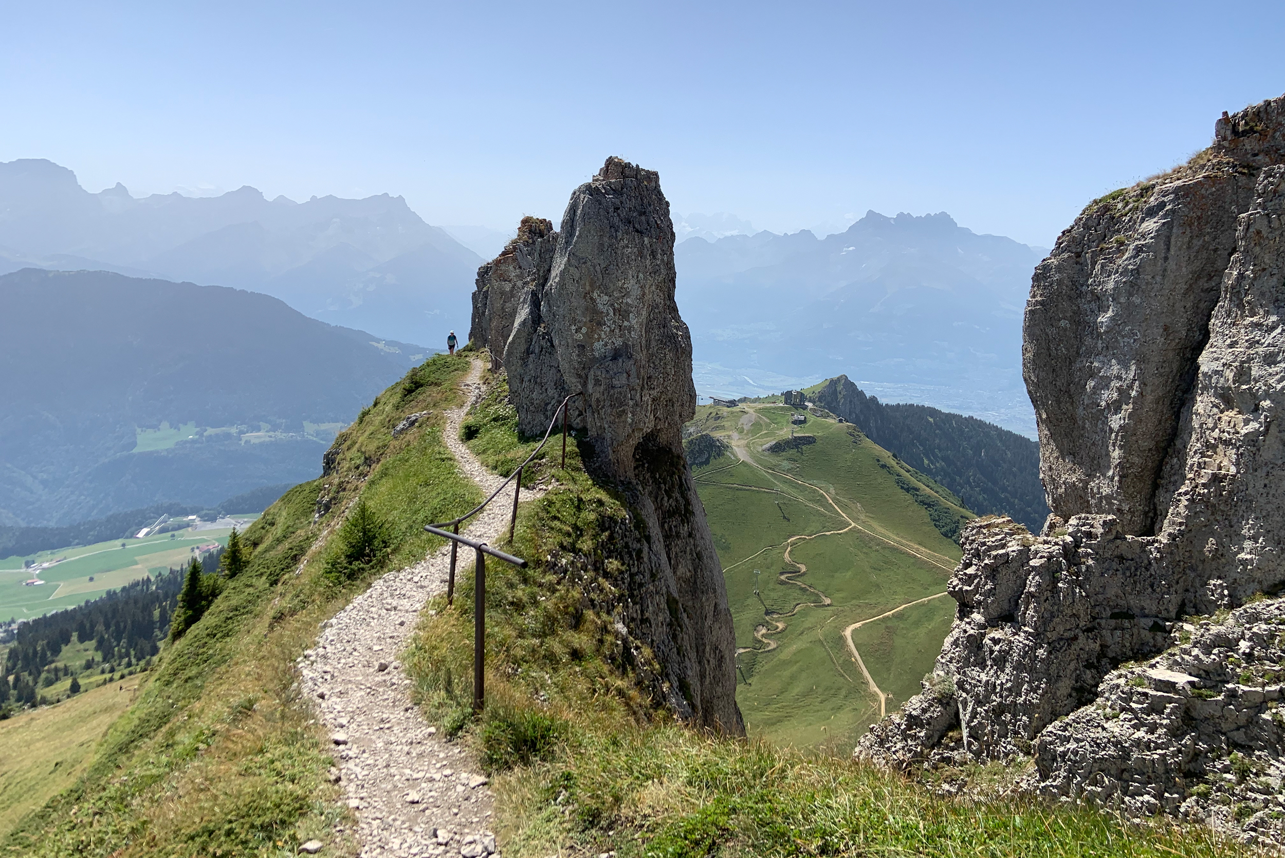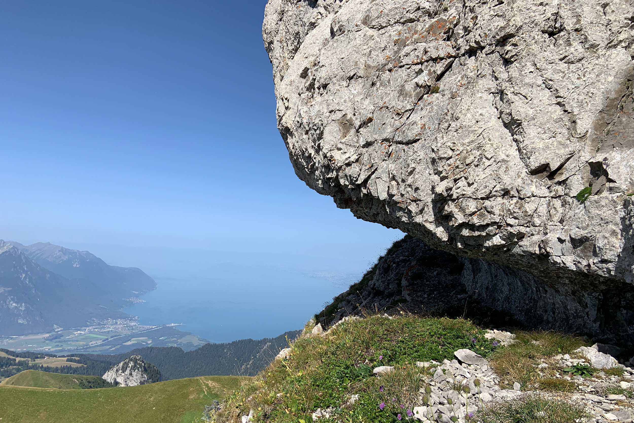 À mi-chemin, n’oubliez pas de vous retourner pour admirer le lac Léman qui se trouve dans votre dos. Et une fois en haut… spectacle garanti avec une vue imprenable sur le lac, sur la chaîne des Alpes avec quelques vautours et choucas aux becs jaunes qui ne manqueront pas de vous rendre visite.